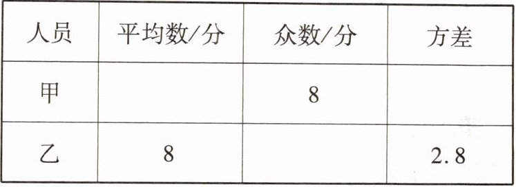 人员 平均数/分 众数/分 方差