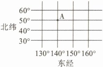 C.东经 $ 140 ^ { \circ } $,北纬 $ 50 ^ { \circ } $