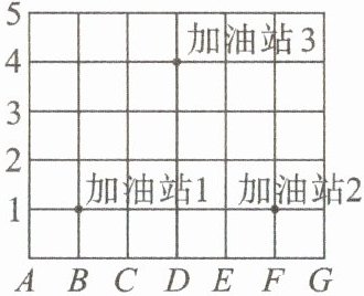 5. 某市区有 3 个加油站,它们的位置如图所示.若加油站 1 的位置表示为 $ ( B, 1 ) $,则加油站 3 的位置可表示为