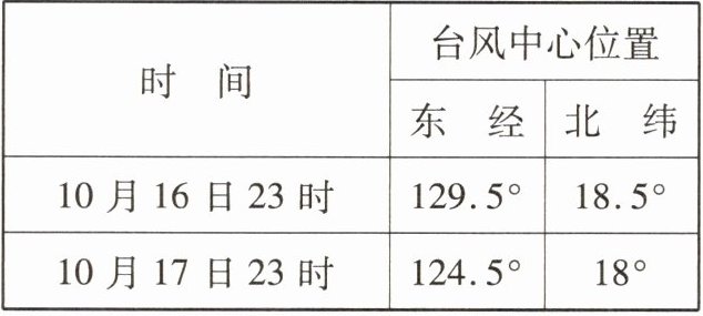 解:根据经纬度图直接找到台风中心在16日23时和17日23时所在的位置即可,如图所示.