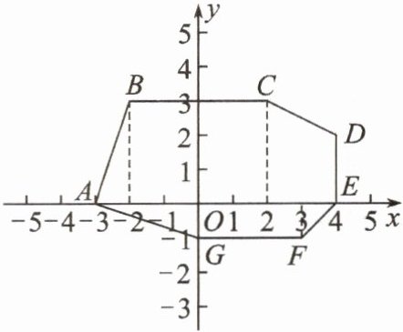 10. 如图,写出多边形 $ ABCDEFG $ 各个顶点的坐标,并回答下列问题: