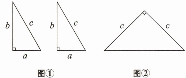 8. 用硬纸板做成的两个全等直角三角形如图①所示,两直角边的长分别为$ a 和 b $,斜边的长为$ c $.图②是以$ c $为直角边的长的等腰直角三角形.请你开动脑筋,将它们拼成一个能验证勾股定理的图形.