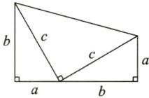 (2)根据梯形的面积公式可知该梯形的面积为$\frac {1}{2}(a+b)(a+b),$由上图我们还发现该梯形的面积等于3个三角形的面积和,即$\frac {1}{2}ab+\frac {1}{2}ab+\frac {1}{2}c^{2},$两者列成等式化简即可得$a^{2}+b^{2}=c^{2}.$