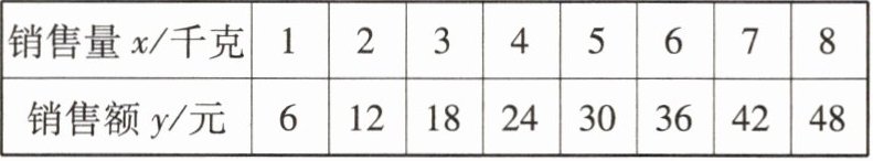 8. 小李家的猕猴桃喜获丰收。在销售过程中,猕猴桃的销售额$y$(元)与销量$x$(千克)满足如下关系: