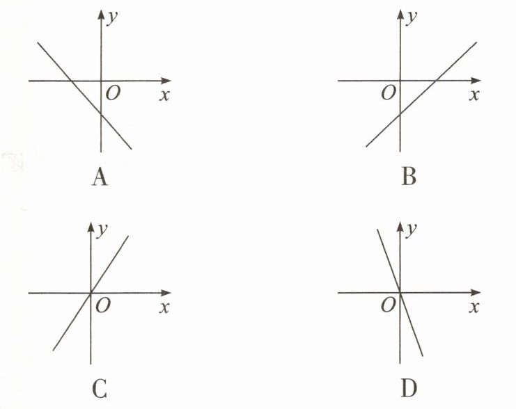 1. 已知正比例函数$y = kx$($keq0$),当$x = -1$时,$y = 2$,则它的图象大致是(