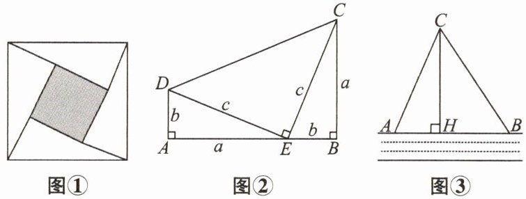 (2) 如图③,在一条东西走向河流的一侧有一村庄$ C $,河边原有两个取水点$ A $,$ B $,其中$ AB = AC $.由于某种原因,由$ C 到 A $的路现在已经不通,该村为方便村民取水决定在河边新建一个取水点$ H $(点$ A $,$ H $,$ B $在一条直线上),并新修一条路$ CH $,且$ CH \perp AB $,测得$ CH = 6 $千米,$ HB = 4 $千米.求原路$ CA $长多少千米.