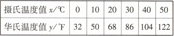 3. 一支温度计的示意图如图所示,图中左边是用摄氏温度表示的温度值,右边是用华氏温度表示的温度值。这两个温度值之间的部分对应关系如表所示: