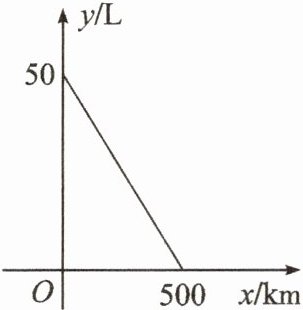 2. 一辆汽车油箱中剩余的油量$y(L)与已行驶的路程x(km)$的对应关系如图所示. 如果这辆汽车每千米的耗油量相同, 当油箱中剩余的油量为$35$L时, 该汽车已行驶的路程为(