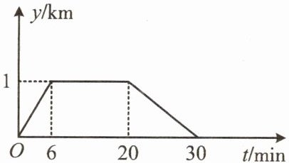 3. 小张去公园晨练. 他离家的距离$y(km)与时间t(min)$的函数图象如图所示. 根据图象信息, 下列说法正确的是(