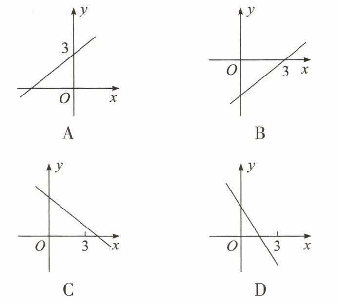 1. 已知方程$kx + b = 0(k eq 0)的解是x = \dfrac{3}{2}$, 则函数$y = kx + b$的图象可能是(