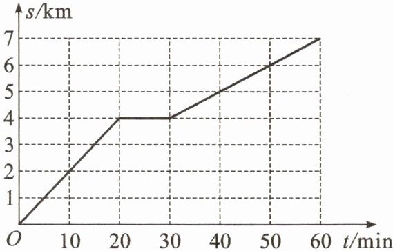 7. 快递员经常驾车往返于公司和客户之间. 在某次投递时, 他与客户间的距离$s(km)与所用时间t(h)$之间的函数关系如图所示(因其他业务, 曾在途中有一次折返, 且快递员始终匀速行驶), 那么快递员的行驶速度是