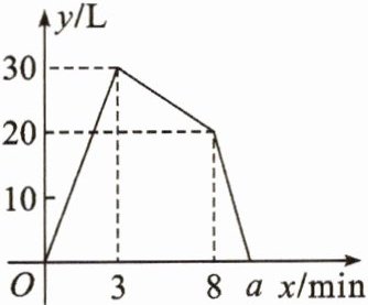 10. 现有一个装有进水管和出水管的容器, 一开始打开进水管注水,$3$min后打开出水管排水,$8$min后关闭进水管, 直至容器中的水全部排完. 在整个过程中, 容器中的水量$y(L)与时间x(min)$之间的函数关系如图所示, 则图中$a$的值为