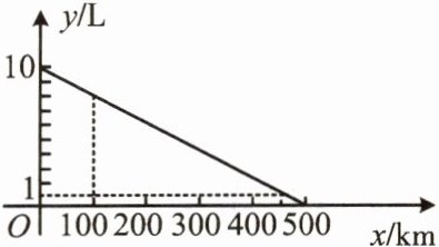 9. 某种摩托车的油箱最多可储油$10$L, 加满油后, 油箱中剩余油量$y(L)与摩托车行驶路程x(km)$之间关系如图所示.