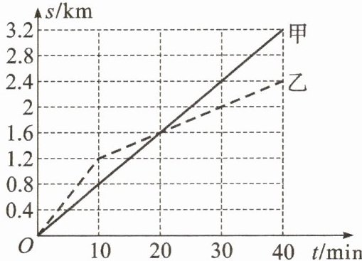 2. 甲、乙两位同学放学后走路回家,他们走过的路程s(km)与所用时间t(min)之间的函数关系如图所示.根据图象可知下列说法错误的是(
