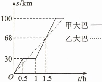 C.甲大巴停留后用1.5 h追上乙大巴