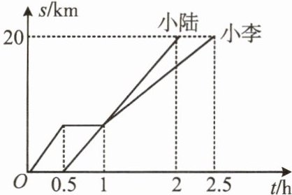 4. 小李与小陆从A地出发,骑自行车沿同一条路行驶到B地.他们离出发地的距离s(km)和行驶时间t(h)之间的函数关系图象如图所示,有下列说法: