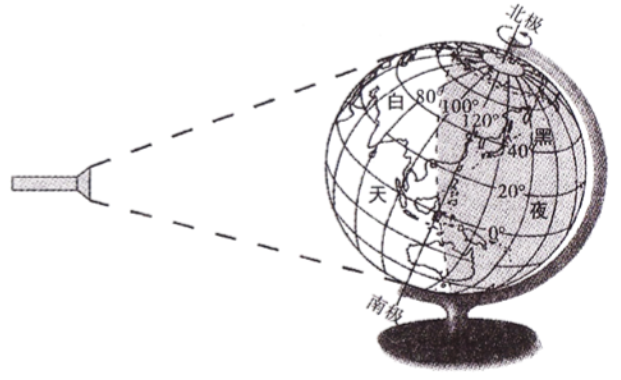 地球是一个不发光且不透明的球体,同一瞬间阳光只能照亮半个地球,被阳光照亮的半个地球是白昼,没有被阳光照亮的半个地球是黑夜。地球不停地自西向东自转,昼夜也就不断地交替。