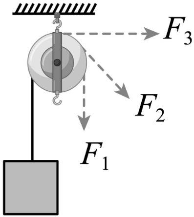 3. 分别记录重物的重力$G$和测力计的示数$F$,改变拉力方向(如斜向下拉),再次记录测力计示数$F$ 。