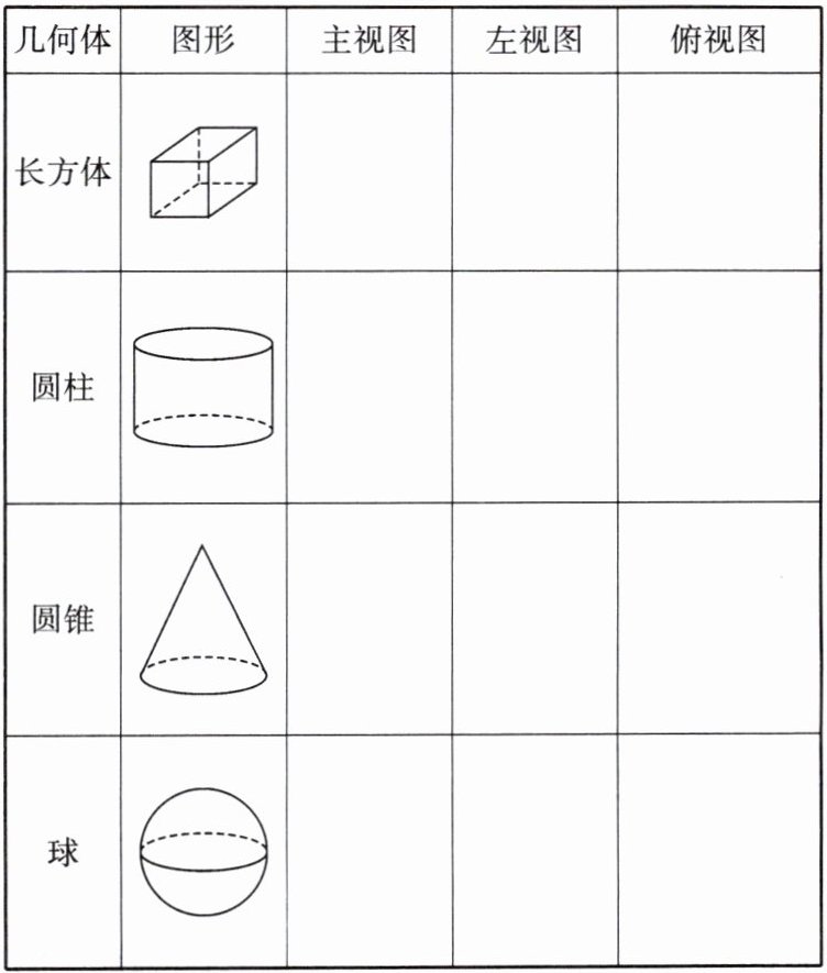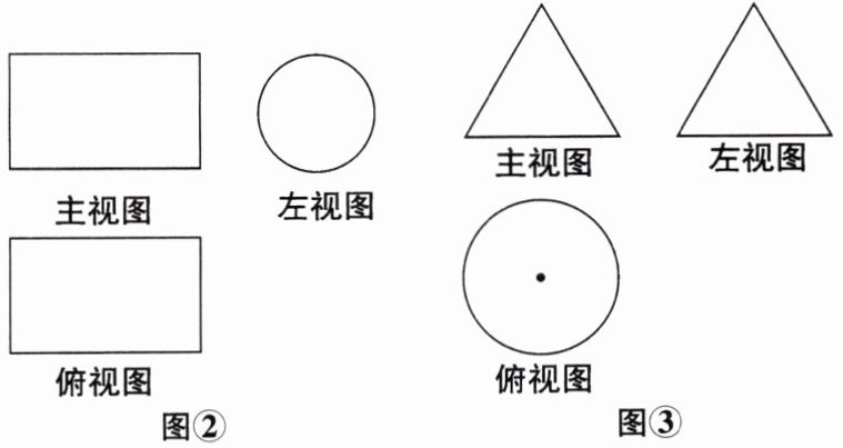1. 如图①,桌上放着一个长方体和一个圆柱,图②所示的 3 组图从左到右分别是它们的