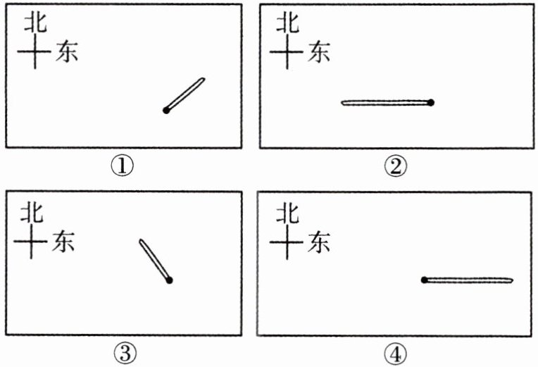4. 在一天之中,小刚观察到旗杆的影子如图所示,则按他观察时间的先后顺序进行排列为(