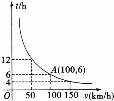 21. 一辆汽车从甲地开往乙地,随着汽车平均速度 $ v(km/h) $ 的变化,到达时间 $ t(h) $ 的变化情况如图所示。