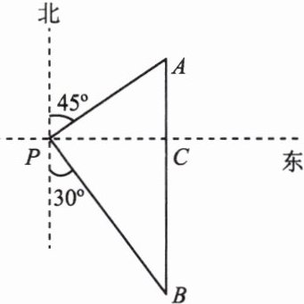 4. 如图,一艘海轮位于灯塔P的东北方向、距离灯塔40$\sqrt{2}$海里的A处,沿正南方向航行一段时间后,到达位于灯塔P的南偏东30°方向上的B处,则海轮行驶的路程AB为(