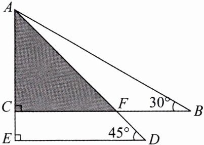 15. 一副三角板所放位置的示意图如图所示,若 $ AB = 14 cm $,则阴影部分的面积是