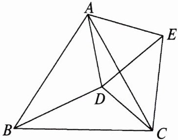 14. 如图,在等边 $ \triangle ABC $ 内有一点 $ D $, $ AD = 4 $, $ BD = 5 $, $ CD = 3 $,将 $ \triangle ABD $ 绕点 $ A $ 逆时针旋转,使 $ AB $ 与 $ AC $ 重合,点 $ D $ 旋转至点 $ E $,则 $ \angle DCE $ 的正切值为______.