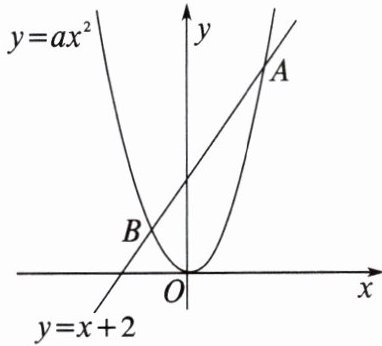 (2) 设直线$y = x + 2与抛物线y = ax^{2}的交点分别为A$,$B$,试确定$A$,$B$两点的坐标.