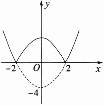 7. 如图,将二次函数 $ y = x^{2} - 4 $ 位于 $ x $ 轴下方的图象沿 $ x $ 轴翻折,得到一个新函数的图象(图中的实线)。