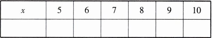 | $x$ | $5$ | $6$ | $7$ | $8$ | $9$ | $10$ |