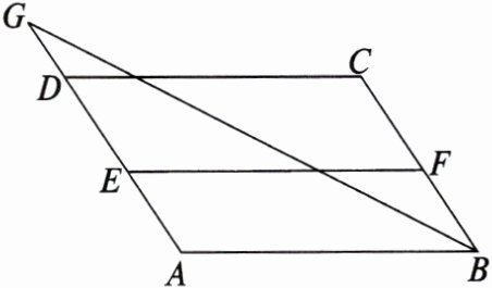 2. 如图,在$□ ABCD$中,点$E$,$F分别在边AD$,$BC$上,且$EF// CD$,$G为边AD$延长线上一点,连接$BG$. 图中与$\triangle ABG$相似的三角形有(