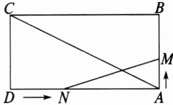 5. 如图,已知矩形$ABCD的边长AB = 3\mathrm{cm}$,$BC = 6\mathrm{cm}$. 动点$M从点A$出发,沿$AB方向以1\mathrm{cm/s}的速度向点B$匀速运动. 同时,动点$N从点D$出发,沿$DA方向以2\mathrm{cm/s}的速度向点A$匀速运动. 当一个点停止运动时,另一个点也停止运动. 问:是否存在时刻$t$,使以$A$,$M$,$N为顶点的三角形与\triangle ACD$相似?若存在,求出$t$的值;若不存在,请说明理由.
