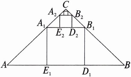 8. 如图,$\triangle ABC是斜边AB的长为3$的等腰直角三角形,在$\triangle ABC内作第1个内接正方形A_1B_1D_1E_1$(点$D_1$,$E_1在AB$上,点$A_1$,$B_1分别在AC$,$BC$上),在$\triangle A_1B_1C内按同样的方法作第2个内接正方形A_2B_2D_2E_2$……依此类推,则第$n个小正方形A_nB_nD_nE_n$的边长是