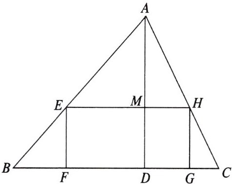 12. 如图,在$\triangle ABC$中,点$F$,$G在BC$上,点$E$,$H分别在AB$,$AC$上,四边形$EFGH$是矩形,$EH = 2EF$,$AD是\triangle ABC$的高,$BC = 8$,$AD = 6$,则$EH$的长为
