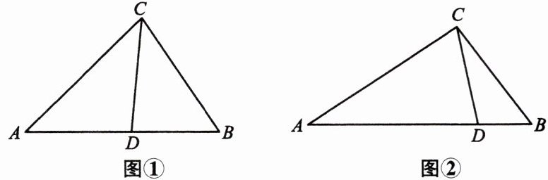 (2)如图②,在$\triangle ABC$中,$AC = 2$,$BC = \sqrt{2}$,$CD是\triangle ABC$的完美分割线,且$\triangle ACD是以CD$为底边的等腰三角形,找出$CD与BD$的关系.