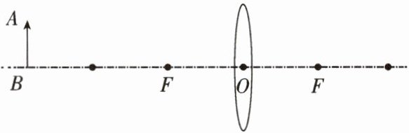6. 请在图中完成物体$AB$经凸透镜成像的光路图.