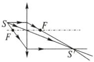 7. 如图所示,$S$为点光源,$S'$为点光源的像,虚线为凸透镜主光轴. 请画出凸透镜位置并标出凸透镜的焦点.