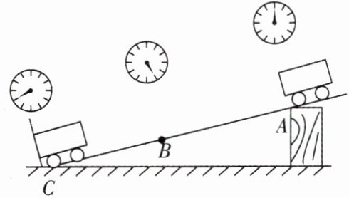 4. 如图为小明做“测量物体运动的平均速度”的实验过程,图中的停表(停表每格为1 s)分别表示小车通过斜面A、B、C 3点的时刻,B点是全程AC的中点. 下列关于小车通过上、下半段路程所用的时间和平均速度的关系正确的是(