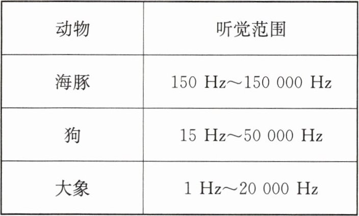 (1)表格中给出了 3 种动物的听觉范围,其中不能听到超声波的动物是