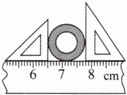 有一根钢管,已测得管的内径为7.2mm。现用三角板和刻度尺测钢管的外径,如图所示,由此得出钢管外径是
