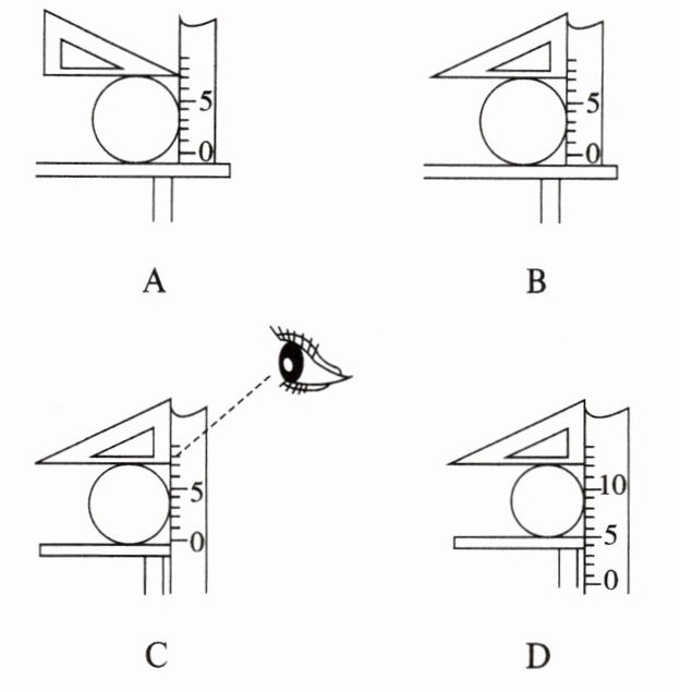 4. 下面是4位同学测量同一圆球直径的操作,正确的是(