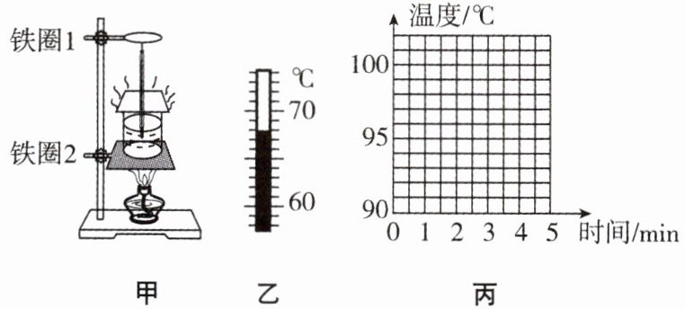 ②请你根据表格中的数据,在图丙中画出水的温度—时间的关系图像。