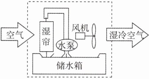 9. 如图是某型号空调扇的示意图。当空气通过湿帘时,湿帘表面的水在