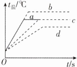 8. 用同一热源给一定质量的水加热,其温度与时间的关系如图中图线$a$所示。若其他条件不变,则下面 3 种情况中,温度与时间的关系图线分别对应______、______和______(均选填图中“$a$”“$b$”“$c$”或“$d$”)。