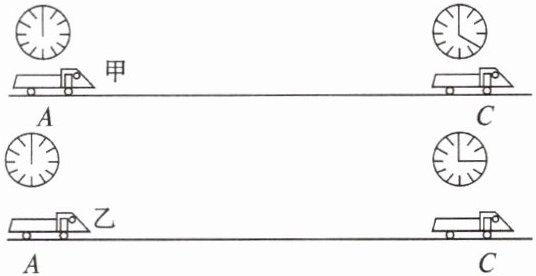 2. 如图表示甲、乙两辆车从 A 地到 C 地的情景(时钟走时在 12 h 以内),则速度大的是