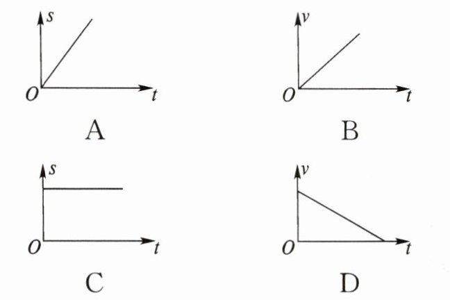 2. 下列 4 幅图是表示物体运动路程 s 或速度 v 与时间 t 关系的图像,其中表示物体做匀速直线运动的是(