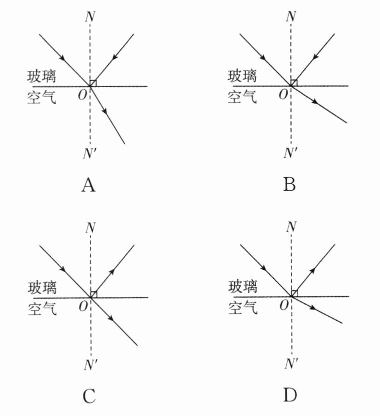 1. 光从玻璃射向空气中,在玻璃与空气的交界面上发生折射和反射. 以下符合实际情况的是(