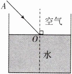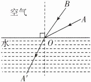 2. 因为光从空气斜射入水中时折射角小于入射角,且BO的入射角小于AO的入射角,所以BO的折射光线应在法线右侧水中,且与法线的夹角小于BO的入射角,同时大于OA'与法线的夹角,画出大致方向。
