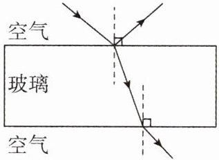 6. 一束光从空气中垂直射向玻璃砖,请画出这束光进入玻璃砖和离开玻璃砖后的大致光线(注意标出法线,不考虑光的反射).